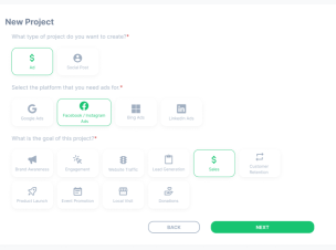 Specify the type of asset you need and the platform you need them for (ex: Facebook feed or Google search). AdPerfect's AI will go to work generating multiple high-converting creative options with copy and designs tailored for that platform and your brand.